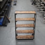 Dieses Regal im Industrial Look bietet jede Menge Stauraum und lässt sich in jedem Raum einsetzen. Es besteht aus versiegeltem Holz, Eisen und Rollen, die Kugel gelagert sind.